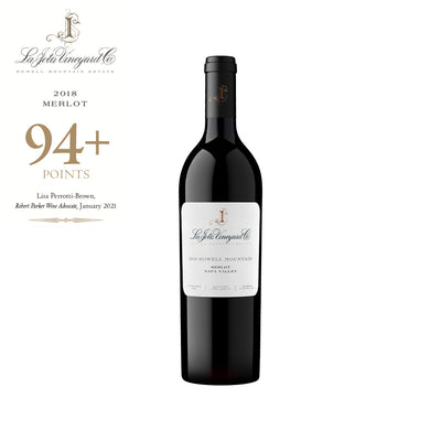 "The 2018 Merlot Howell Mountain was aged for 22 months in oak, 74% new. Deep garnet-purple colored, it opens with earthy notes of truffles, tilled soil, and mossy tree bark with a core of warm cassis, blackberry preserves and fresh plums. Medium to full-bodied, firm and grainy with fantastic freshness and loads of crunchy black fruit flavor layers, it finishes on a lingering mineral notes."