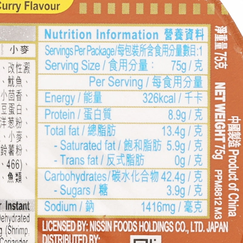 NISSIN Cup Noodles - Seafood Curry Flavour (75g)