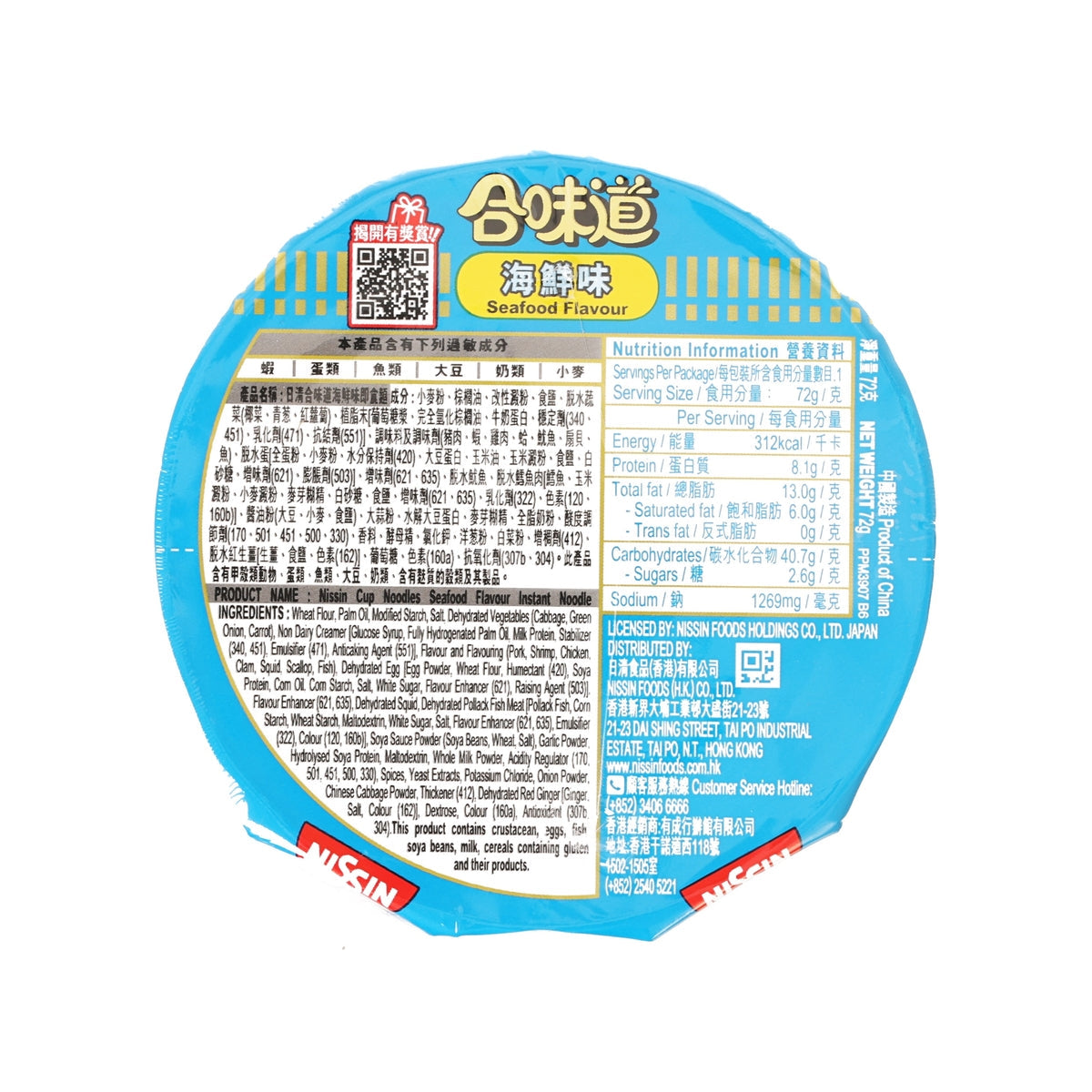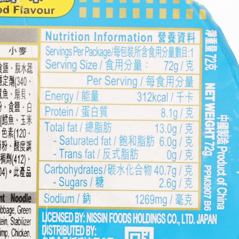 NISSIN Cup Noodles - Seafood Flavour (72g)