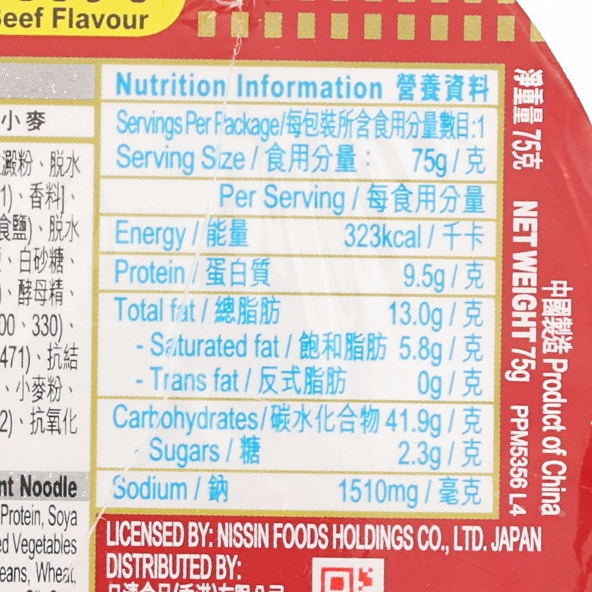 NISSIN Cup Noodles - Spicy Beef Flavour (75g)
