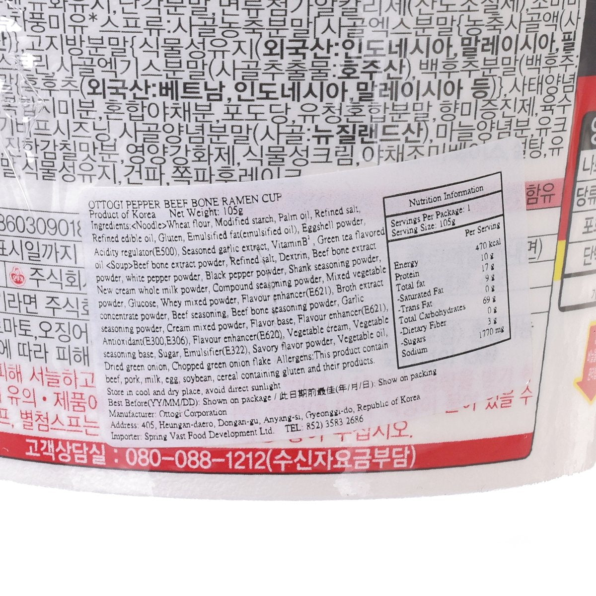 OTTOGI Pepper Beef Bone Ramen Cup (105g)