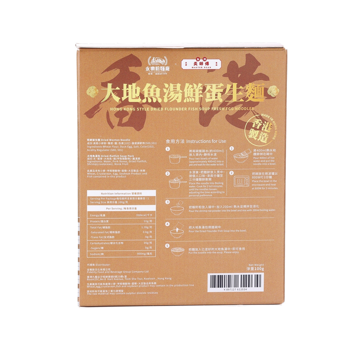 WING LOK Hong Kong Style Dried Flounder Fish Soup Fresh Egg Noodles (100g)
