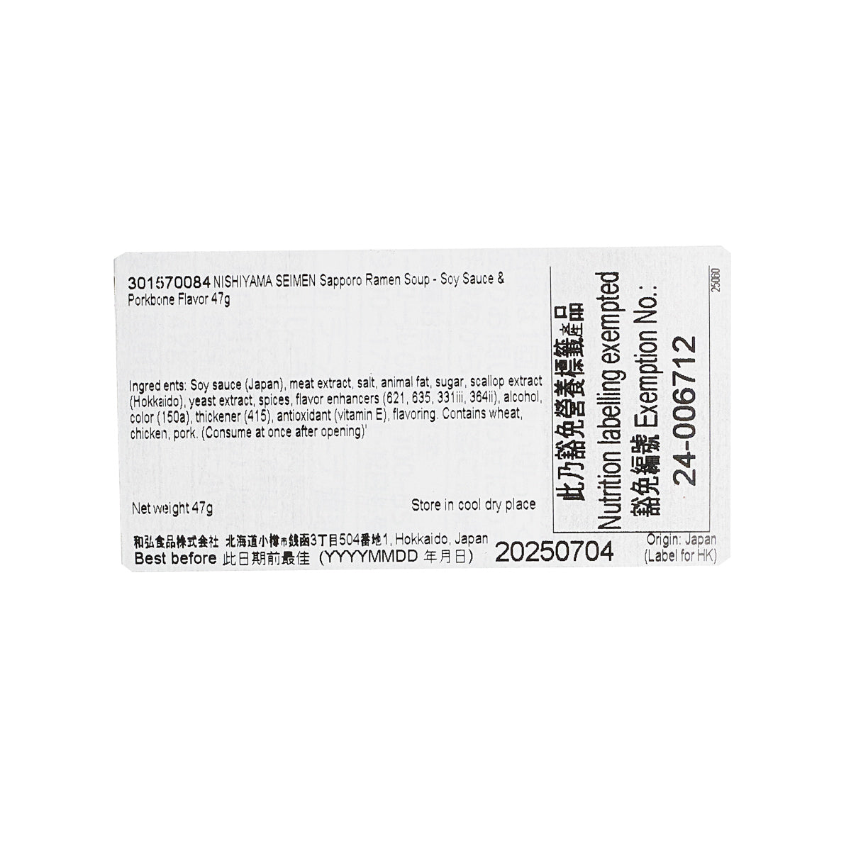 NISHIYAMA SEIMEN Sapporo Ramen Soup - Soy Sauce & Porkbone Flavor (47g)