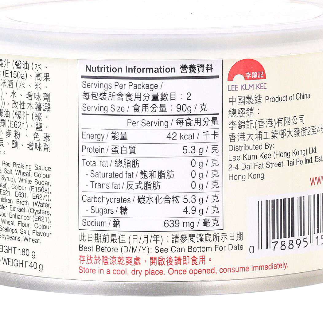 LEE KUM KEE Abalone in Red Braising Sauce with Dried Scallop  (180g)
