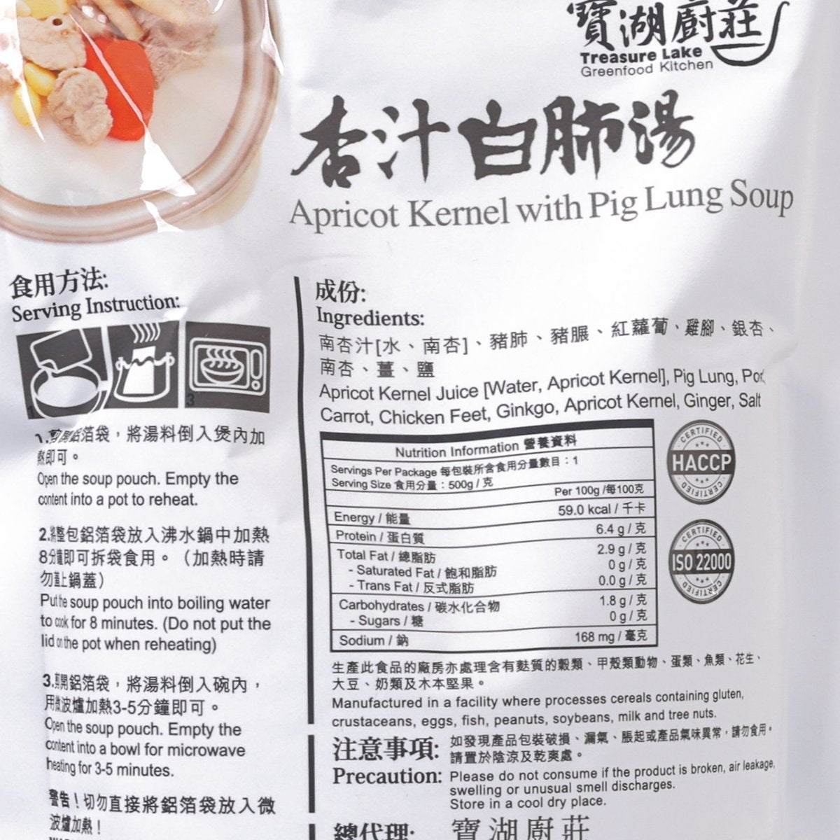 TREASURE LAKE GREENFOOD KITCHEN Almond with Pig Lung Soup (500g)