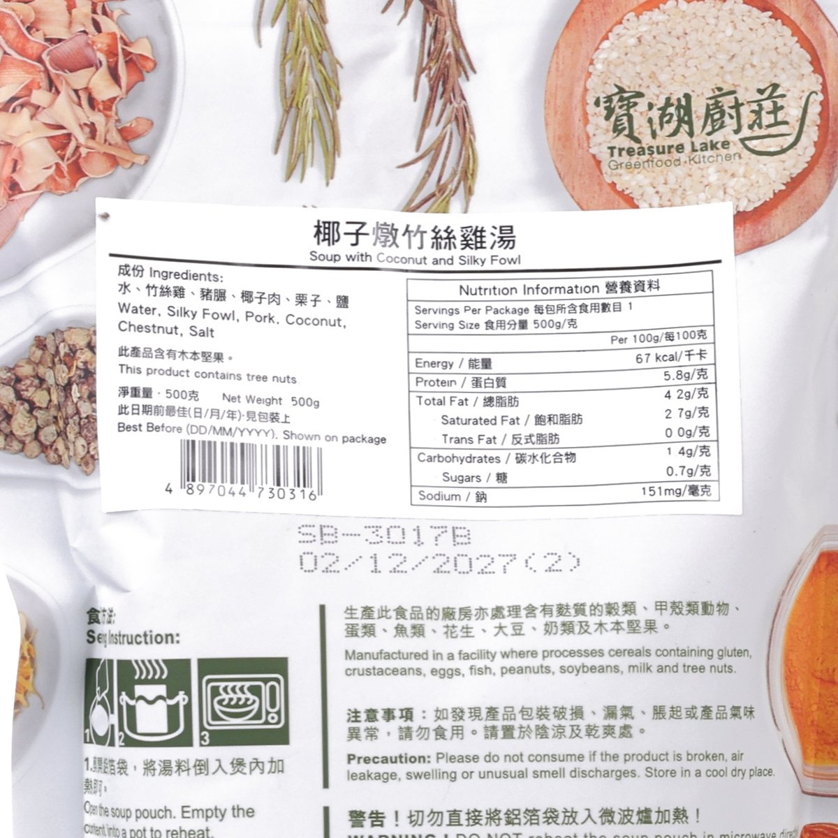 TREASURE LAKE GREENFOOD KITCHEN Soup with Coconut and Silky Fowl (500g)