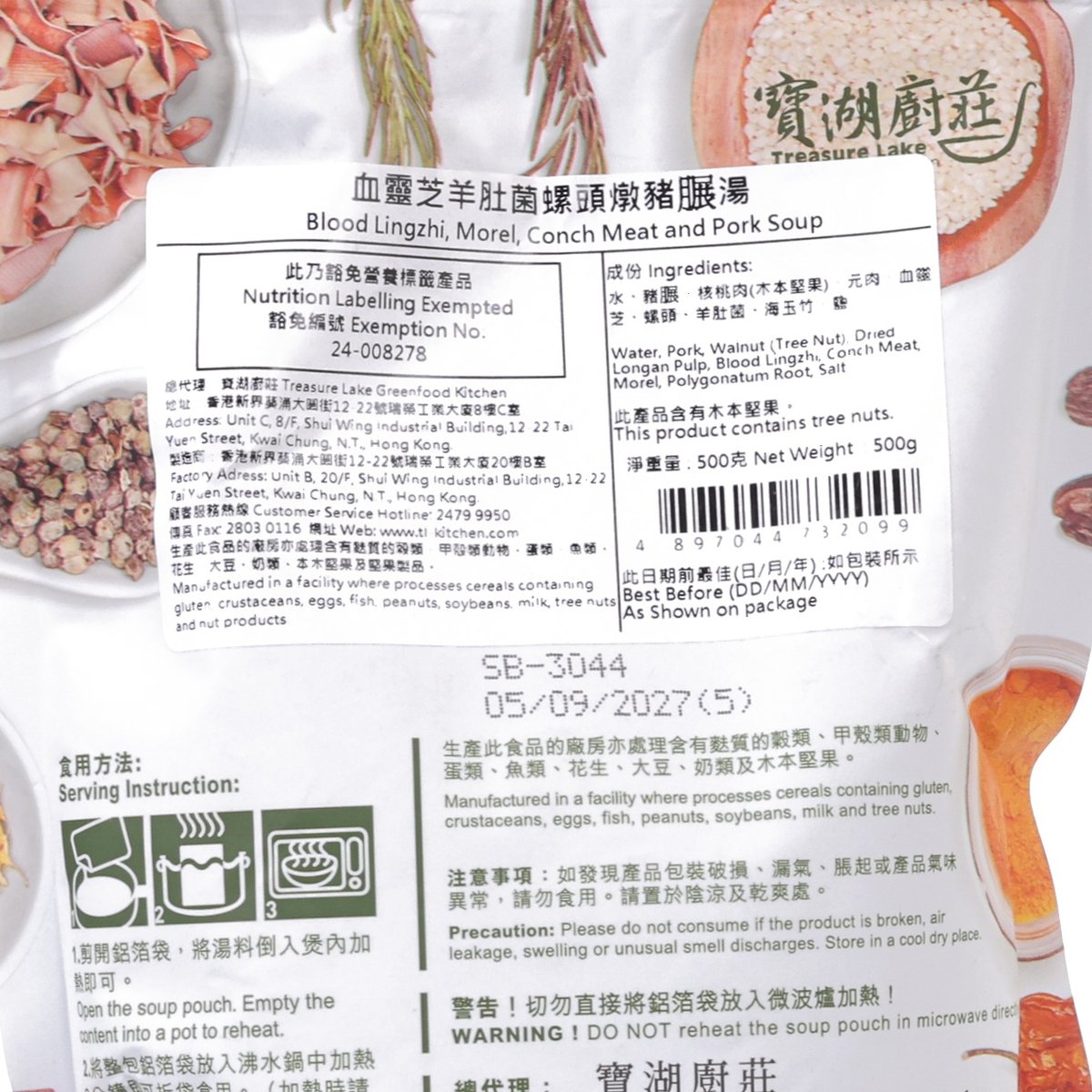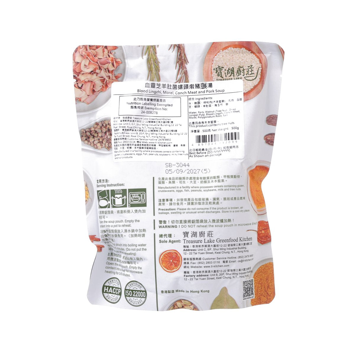 TREASURE LAKE GREENFOOD KITCHEN Blood Lingzhi, Morel, Conch Meat and Pork Soup (500g)