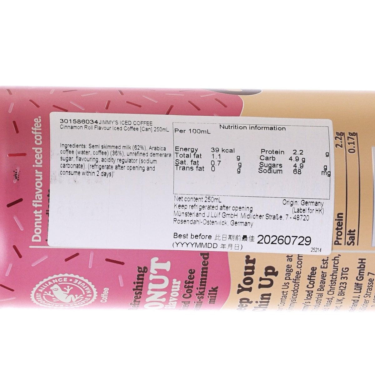 JIMMY'S ICED COFFEE Donut Flavour Iced Coffee [Can] (250mL)