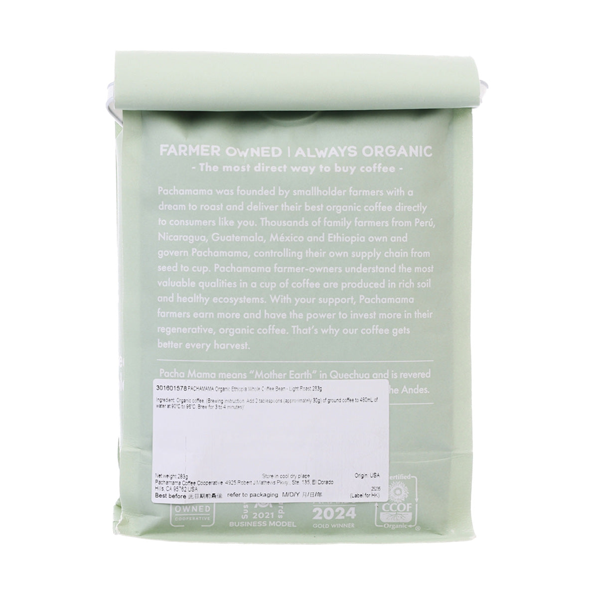 PACHAMAMA Organic Ethiopia Whole Coffee Bean - Light Roast  (283g)