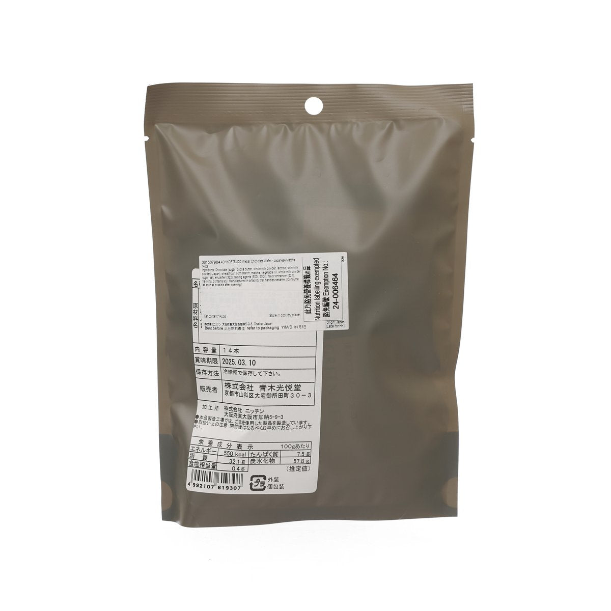 AOKIKOETSUDO Webar Chocolate Wafer - Japanese Matcha  (14pcs)