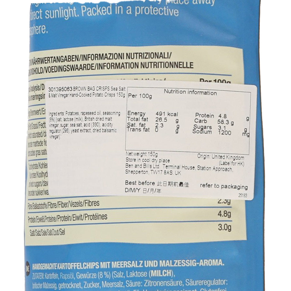BROWN BAG CRISPS Sea Salt & Malt Vinegar Hand-Cooked Potato Crisps (150g)