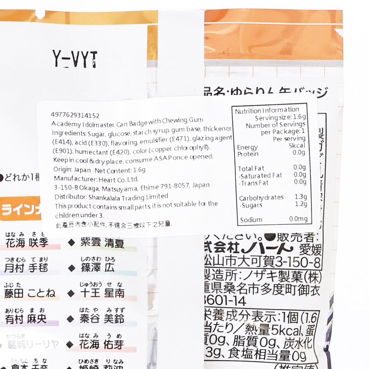 HEART Gakuen Idol Master Tin badge with Chewing Gum (1pc)