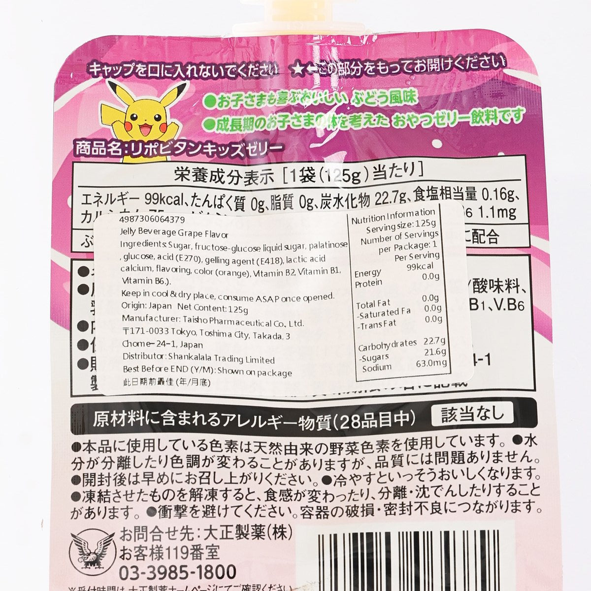 TAISHO Lipovitan Pokemon Jelly Drink - Grape Flavor (125g)