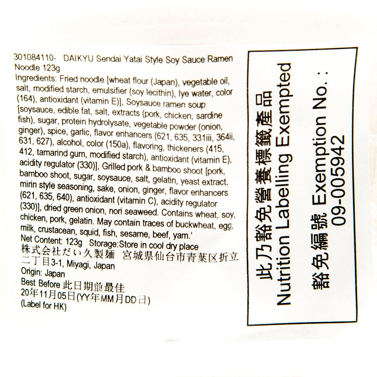 The noodle brand located in the northern part of Miyagi Prefecture, Japan, uses high-quality raw materials from Miyagi Prefecture and the Tohoku region to produce different types of noodles. This soy sauce ramen cup noodle is made with the nostalgic flavour of classic Sendai Yatai. It has delicious dehydrated slices such as char siu, seaweed, and green onions, also a slight soy sauce flavour. Simply pouring hot water to enjoy!
