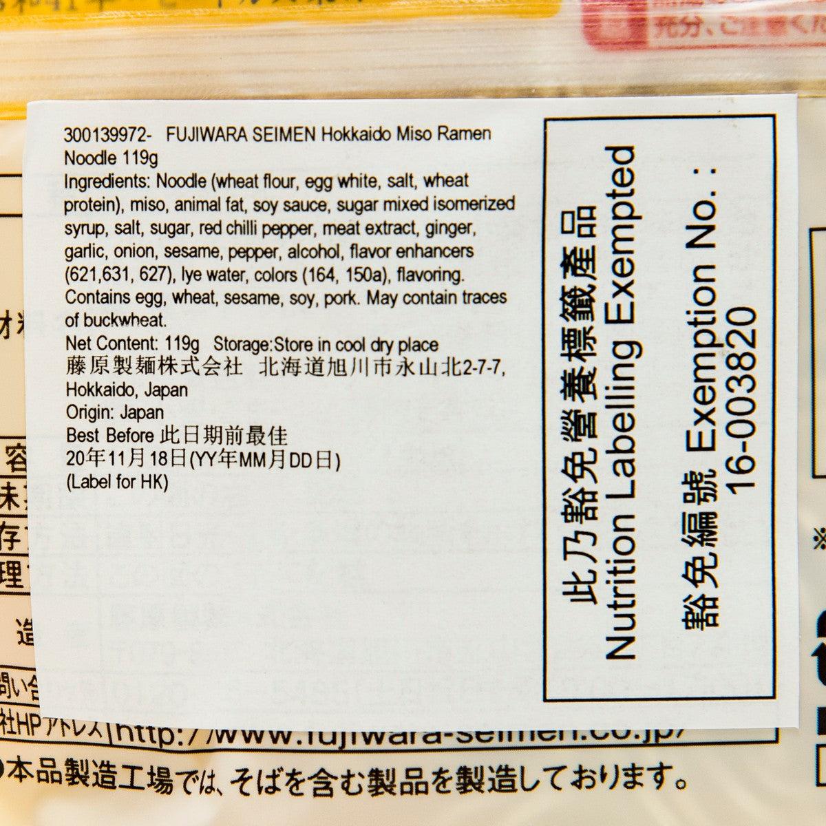 FUJIWARA SEIMEN Hokkaido Miso Ramen Noodle (119g)
