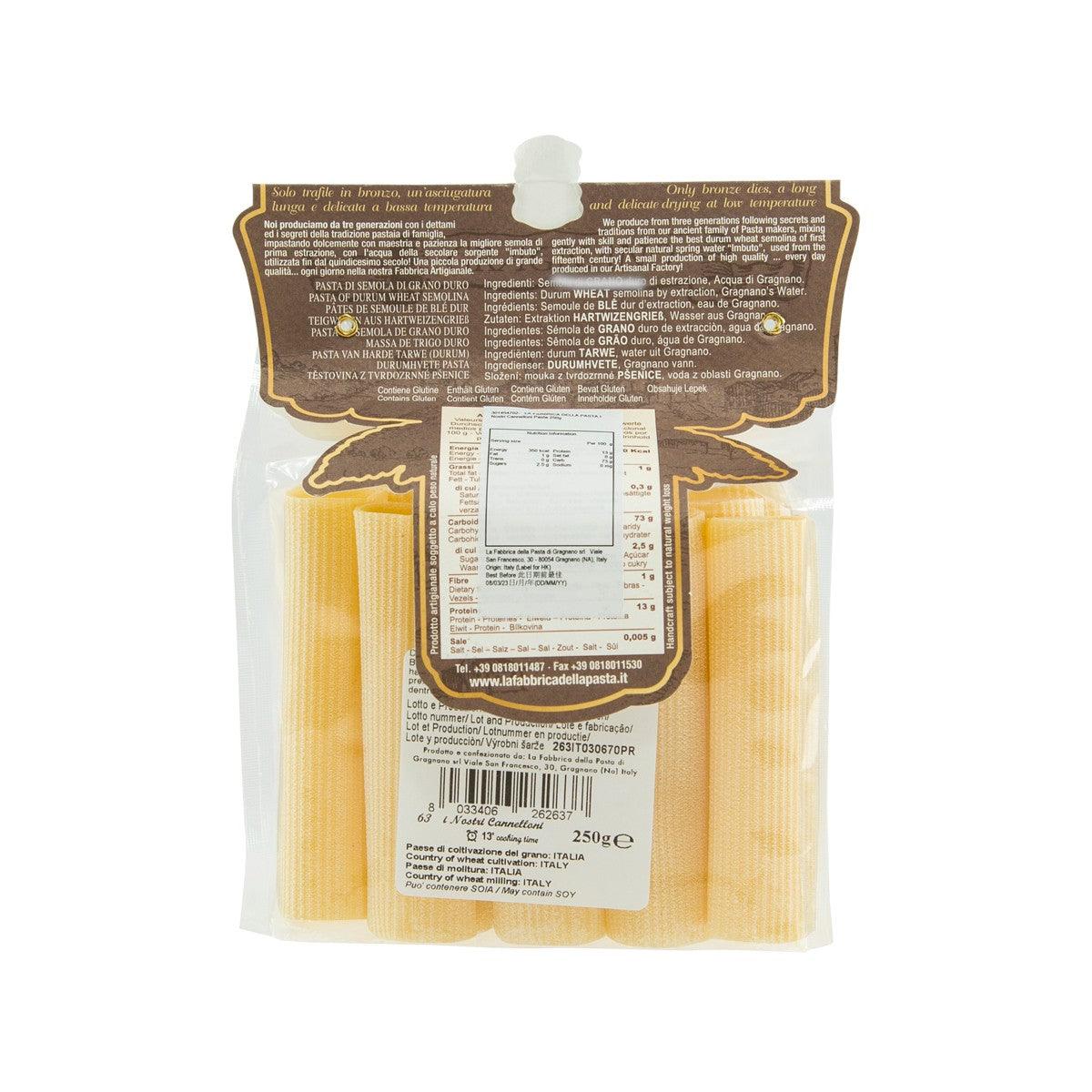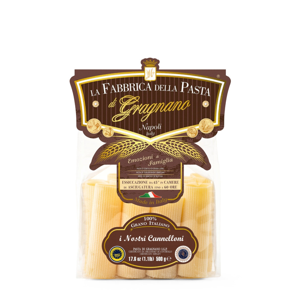 Using the best durum wheat semolina and natural mountain spring water, the brand has been making high-quality pasta for generations according to the family’s traditional methods and secrets in Gragnano. This Nostri Cannelloni can be baked with tasty fillings and covered with a light layer of tomato and bechamel.