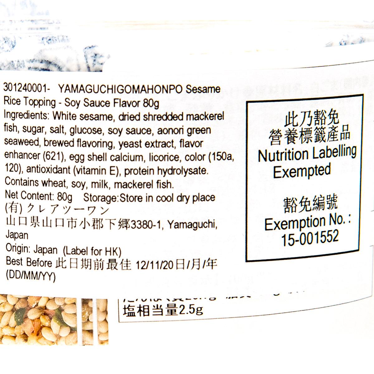 YAMAGUCHIGOMAHONPO Sesame Rice Topping - Soy Sauce Flavor (80g)