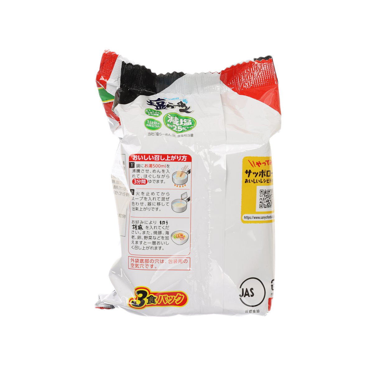 SANYOFOODS Sapporo Ichiban Salt Instant Ramen Noodle - Less Salt  (303g)