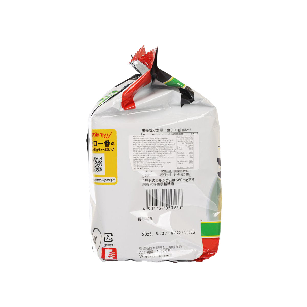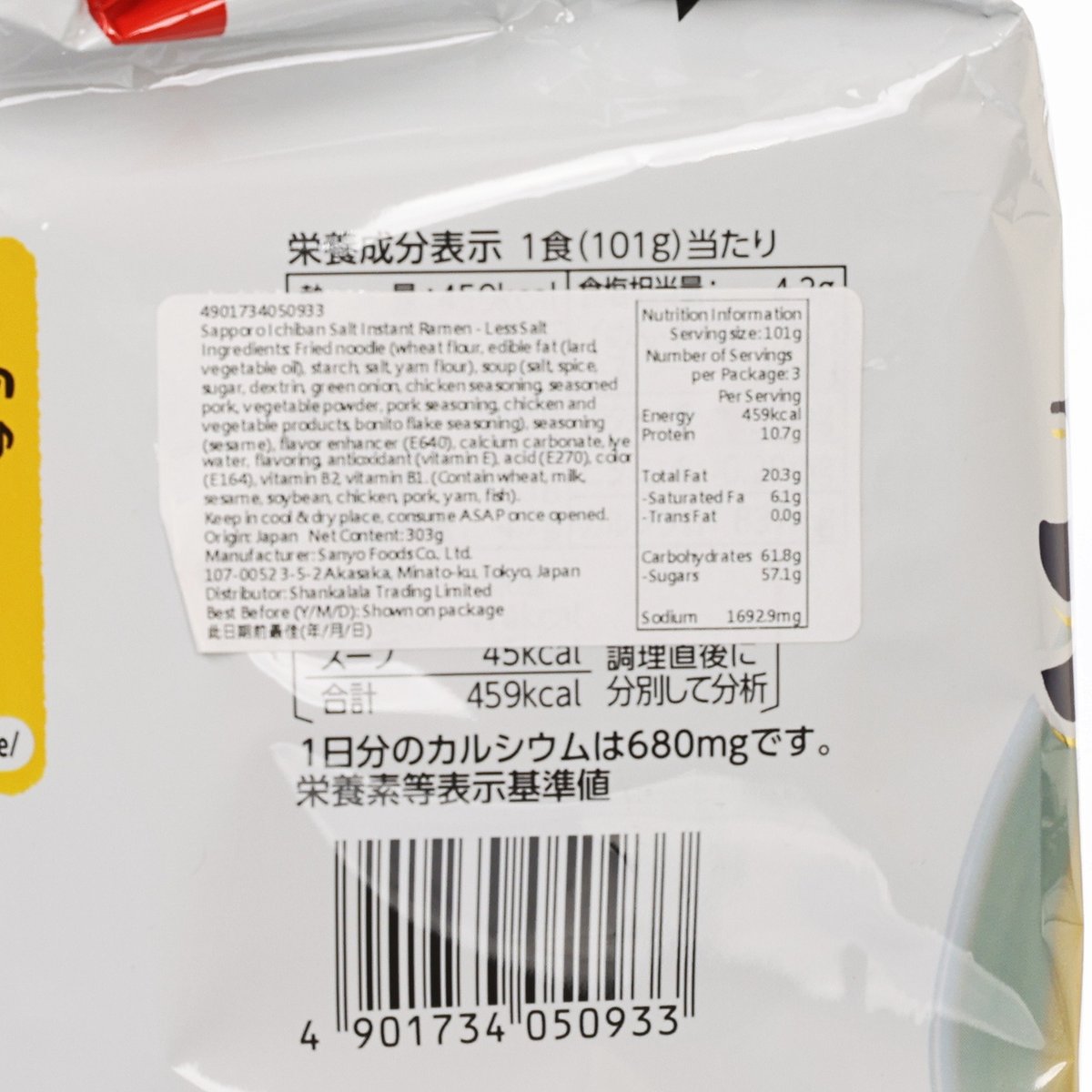 SANYOFOODS Sapporo Ichiban Salt Instant Ramen Noodle - Less Salt (303g)