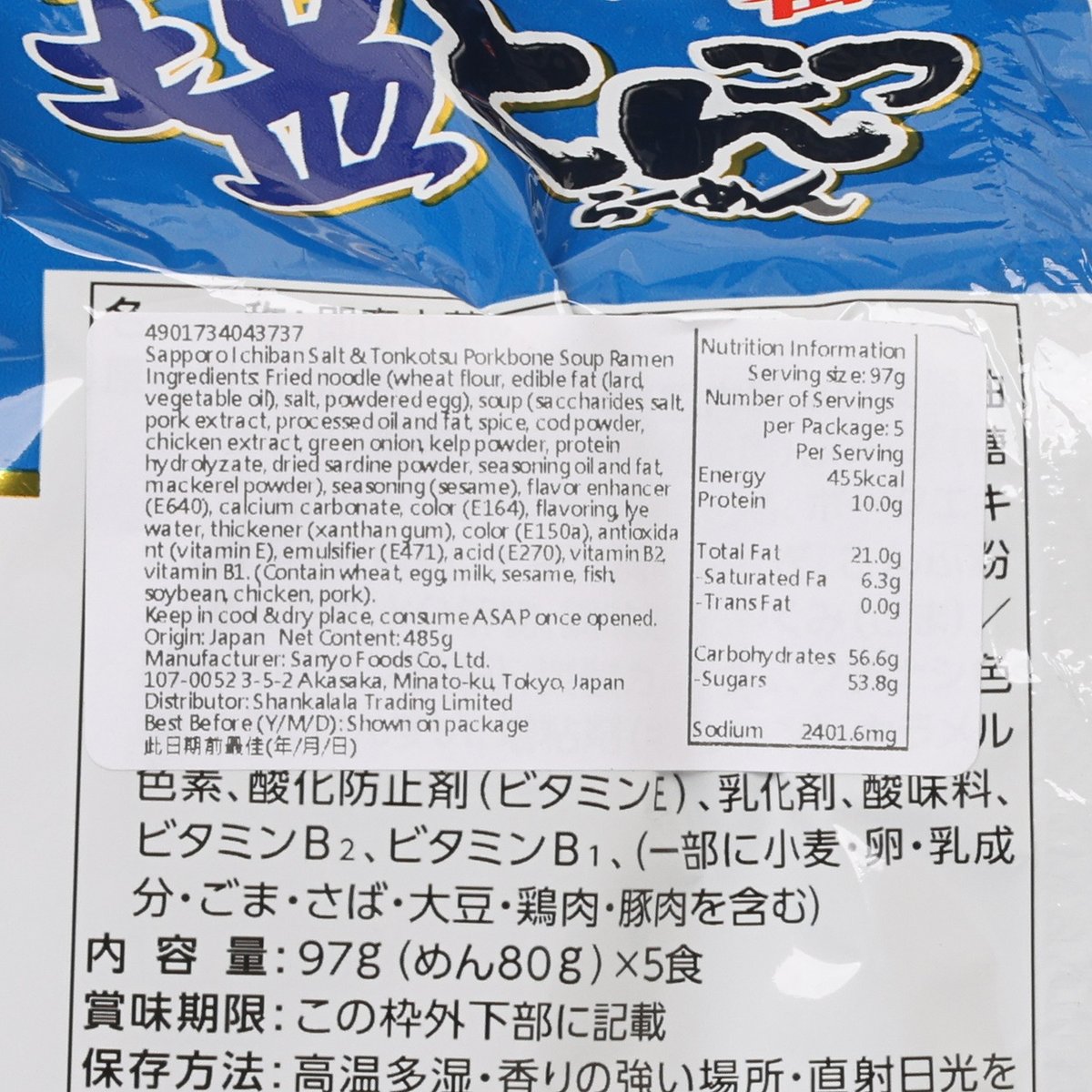 SANYOFOODS Sapporo Ichiban Salt & Pork Bone Soup Instant Ramen Noodle (485g)