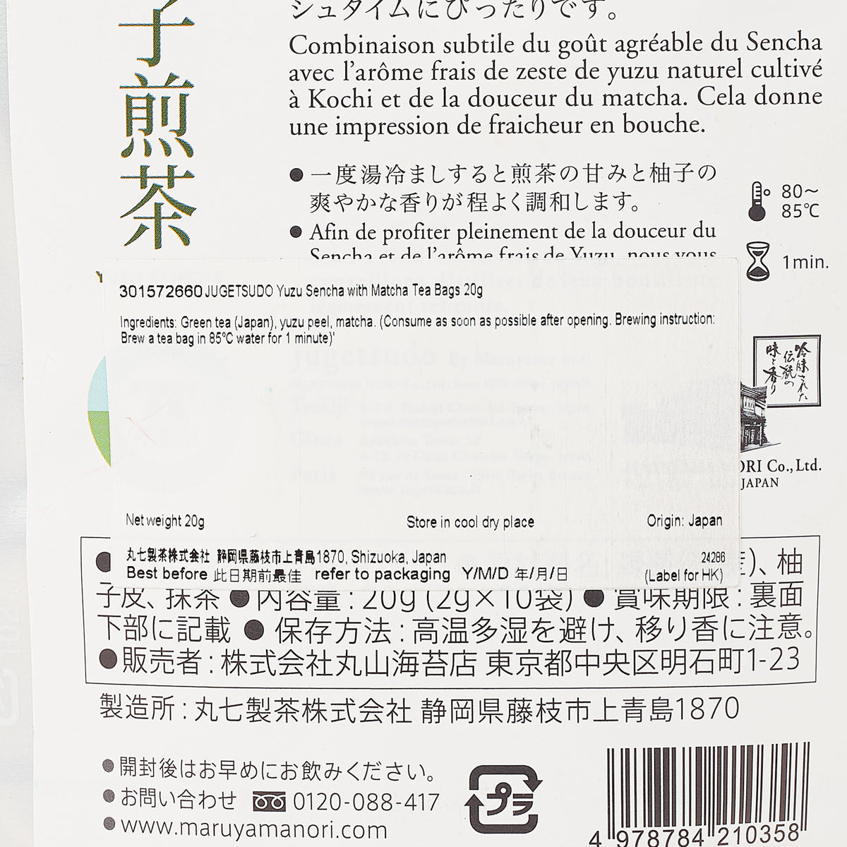 JUGETSUDO Yuzu Sencha with Matcha Tea Bags  (20g)