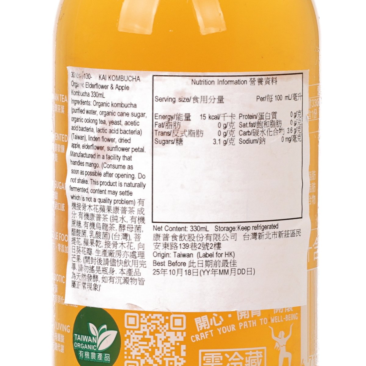 KAI KOMBUCHA Organic Elderflower & Apple Kombucha  (330mL)