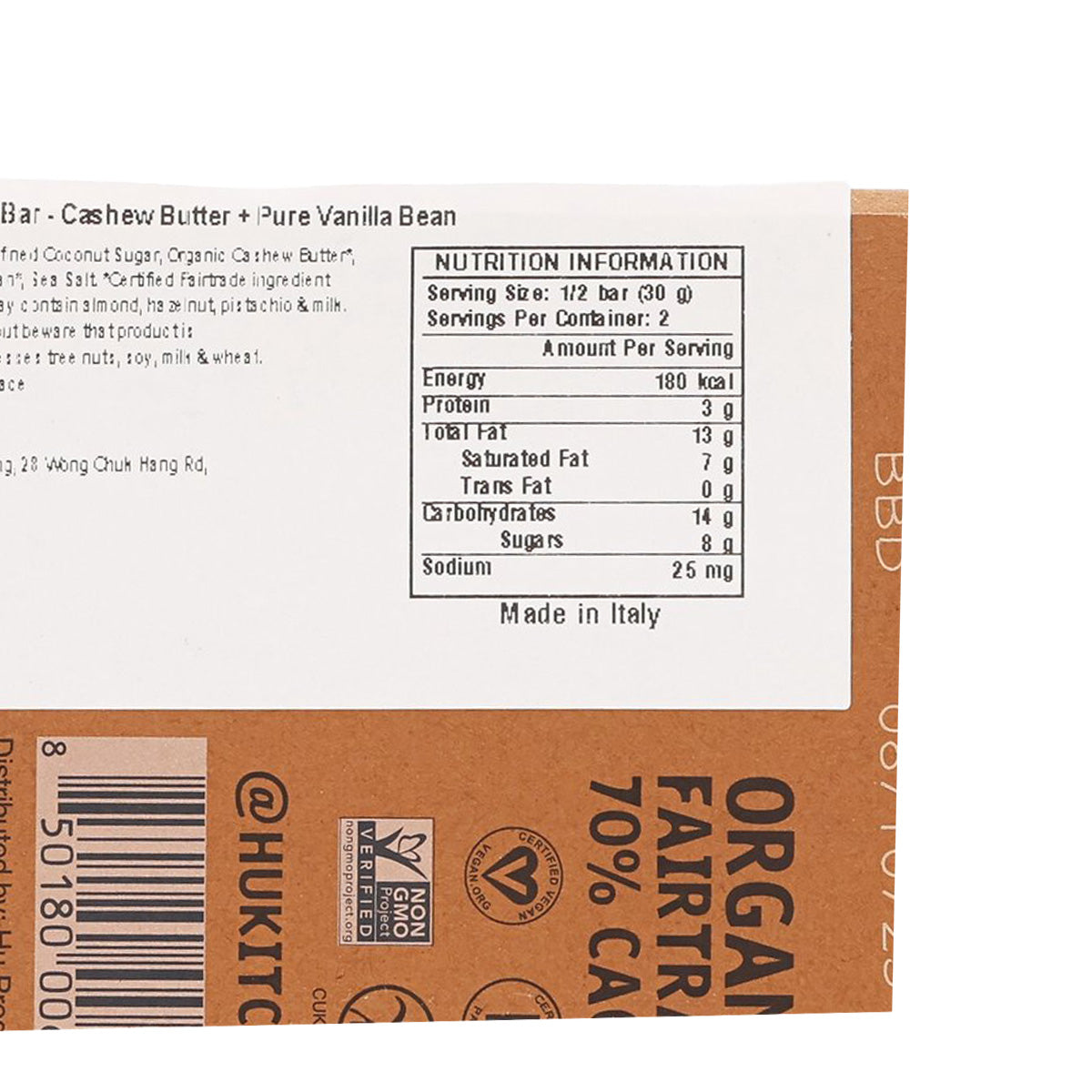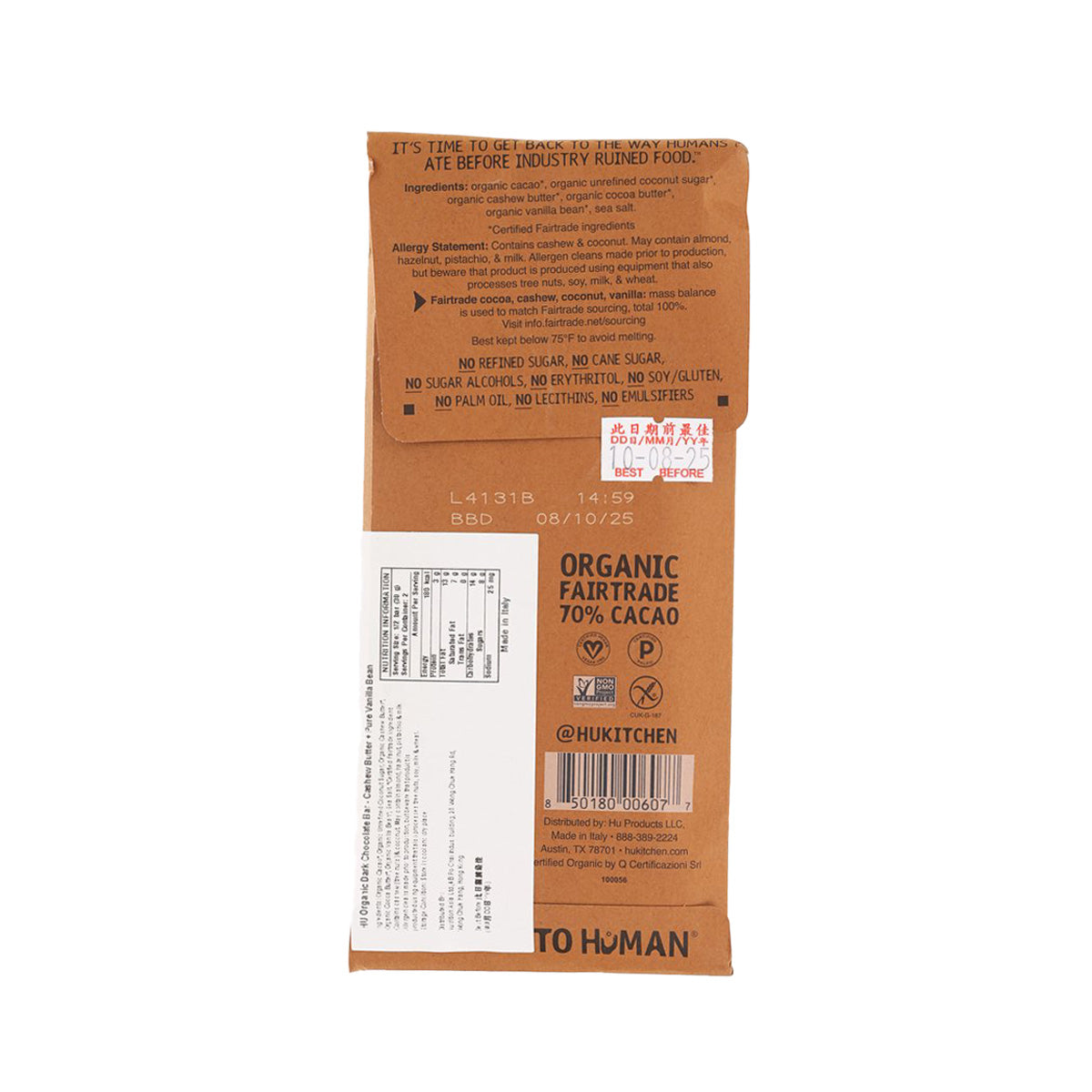 HU Organic Dark Chocolate Bar - Cashew Butter & Pure Vanilla Bean (60g)