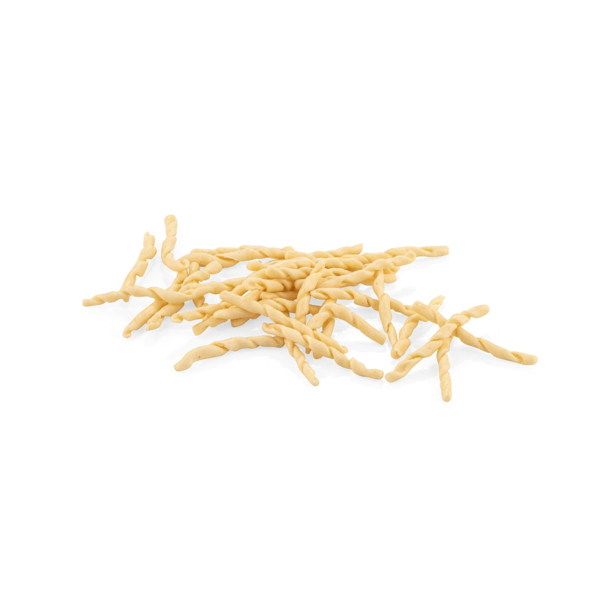 LAFABBRICADELLA Le Trofie Pasta is a short pasta whose dough has been twisted to give it a curled shape, the midsection is especially thick and chewy. Using high-quality durum wheat semolina and natural mountain spring water, bronze- drawing and slow drying at low temperature to create this tasty and high-quality Pasta.