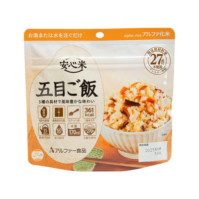 This Instant Alpha Rice - Gomoku Mixed Vegetable is made from Japanese rice, burdock, bamboo shoots, konjac, shiitake mushrooms and other ingredients. Simply pour in hot water and 15 minutes will be ready. The package includes a spoon, you can enjoy it anytime anywhere. An indispensable instant food for the busy urbanites.