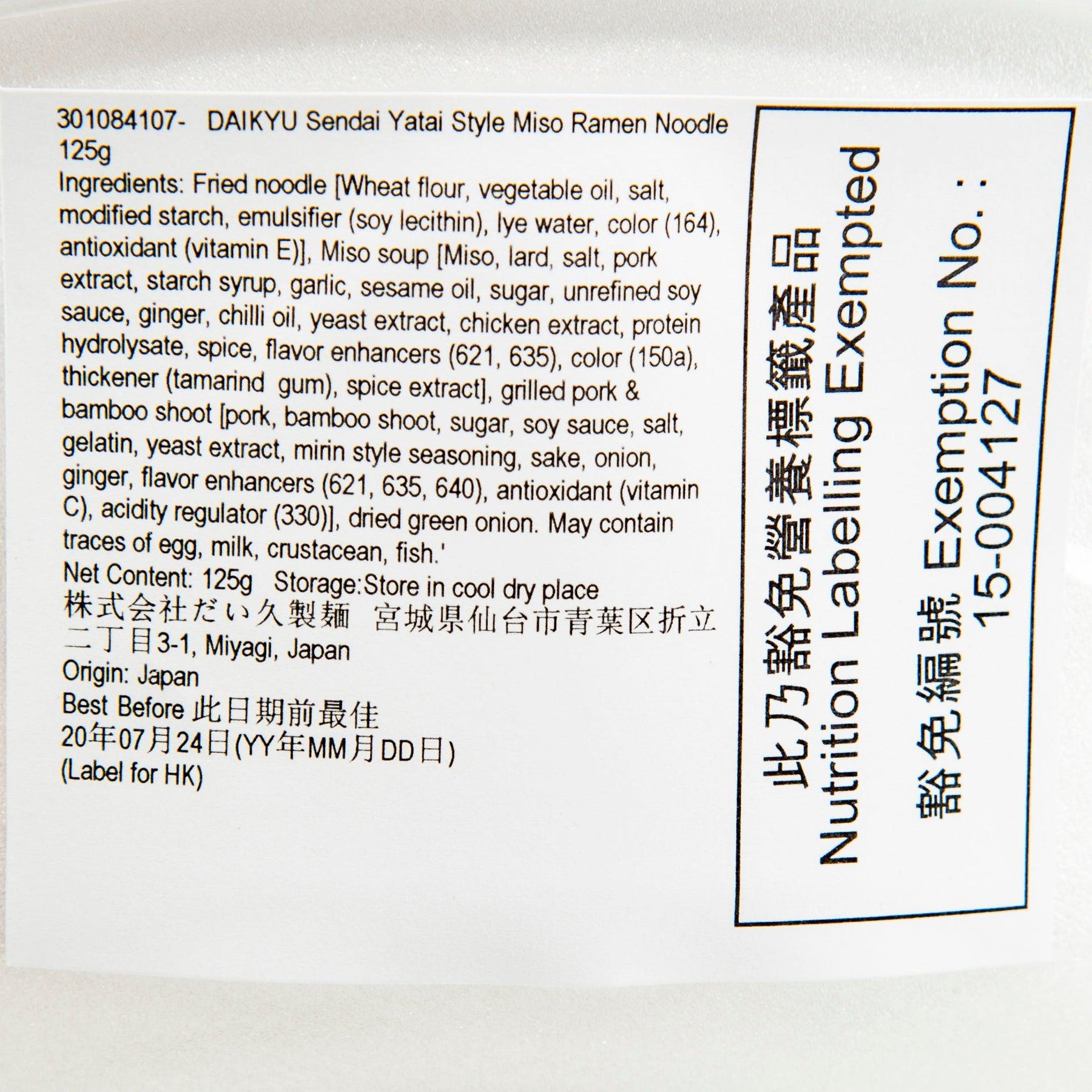 DAIKYU Sendai Yatai Style Miso Ramen Noodle (125g)