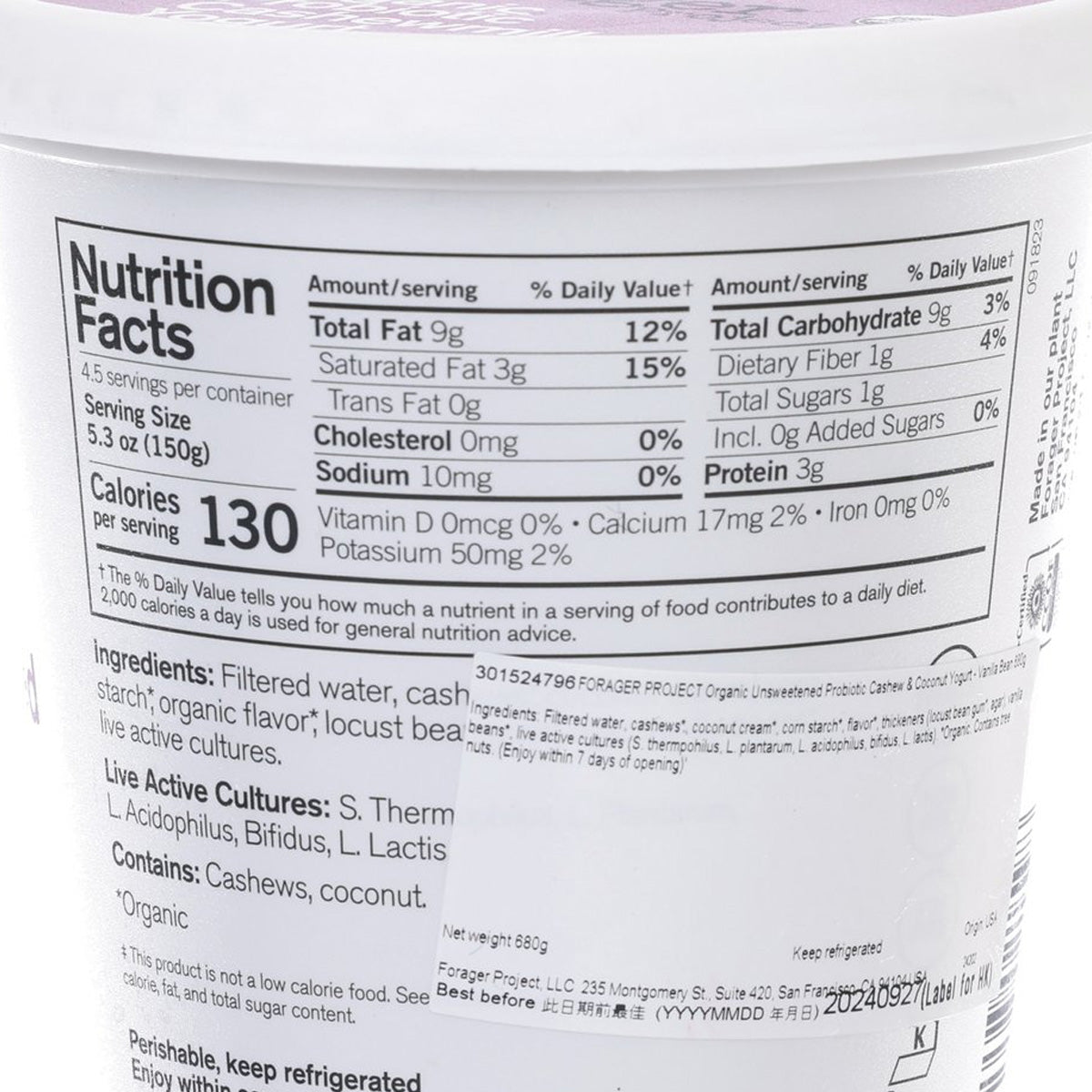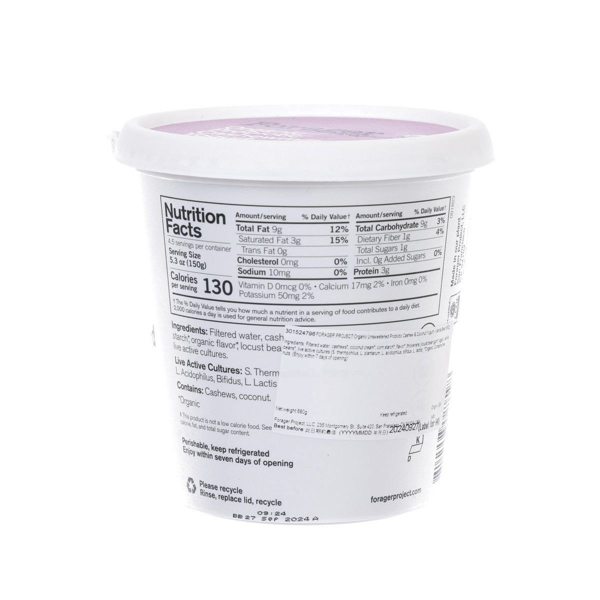 FORAGER PROJECT Organic Unsweetened Probiotic Cashew & Coconut Yogurt - Vanilla Bean (680g)