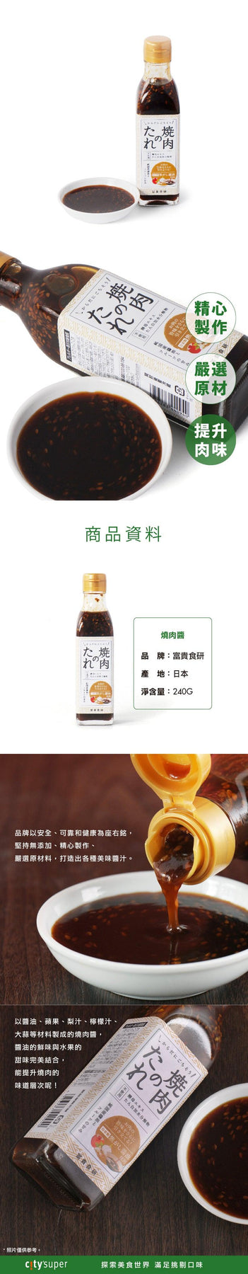 With the motto of safety, reliability and health, the brand insists on meticulous production, strict selection of raw materials, without using additives, creating a variety of delicious sauces. Made with soy sauce, apple, pear juice, lemon juice, garlic and other materials, perfectly combined the umami taste of soy sauce and the sweetness of fruits, this sauce is great to enhance the flavour of grilled dishes.