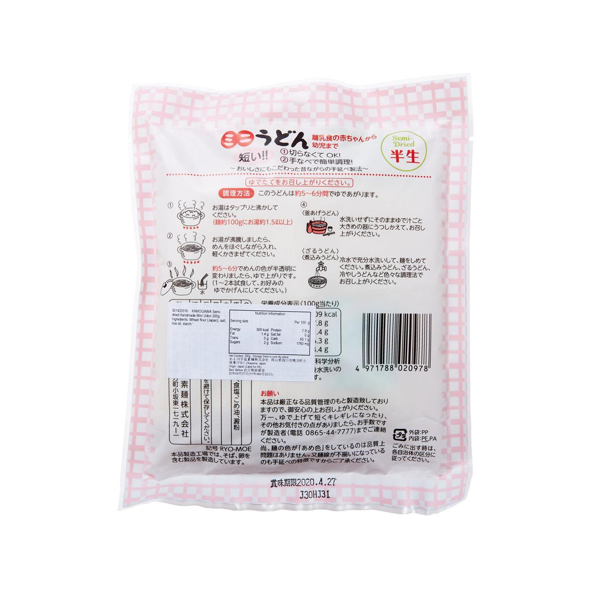 This Semi-dried Handmade Mini Udon from Kamogawa, Japan, is made with traditional craftsmanship. It has a smooth yet pleasantly chewy texture, also has been cut into shorter length for children easier to eat. Simply pair with favourite vegetables, meats and delicious broth to create a simple yet delicious Japanese Udon!