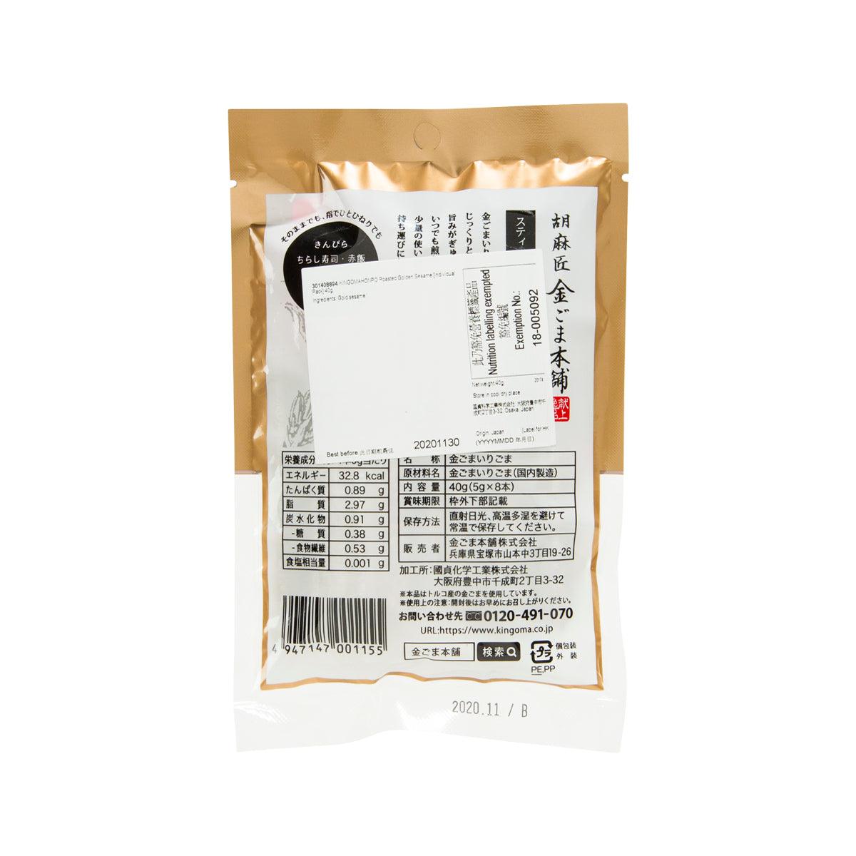 Large, flavourful golden sesame seeds are packed in convenient stick-type individual sachets (5 g each), easy to carry and store. Each time you open a sachet, you can enjoy the fresh aroma and taste of freshly roasted golden sesame.This product was created in response to customer requests such as: “I want to carry sesame for my lunch box,” “I prefer a single-use size,” and “I’d like to consume a fixed amount each time.”Only the finest selected golden sesame is used, and roasted with far-infrared heating to maximise both flavour and aroma.