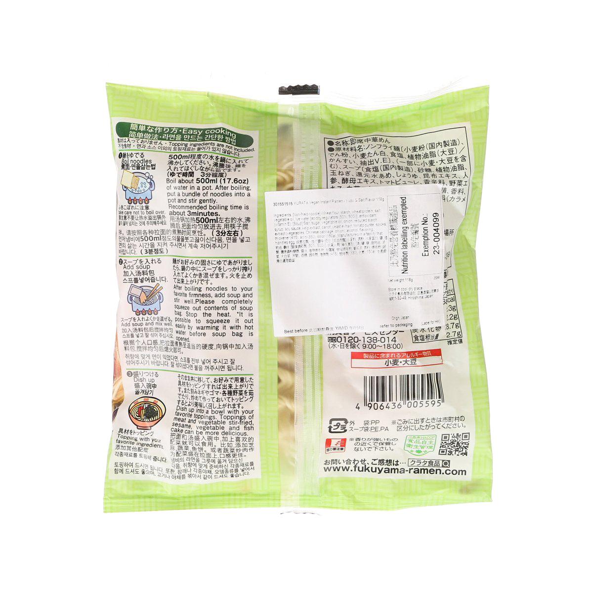 KURATA Vegan Instant Ramen - Yuzu & Salt Flavor  (118g)