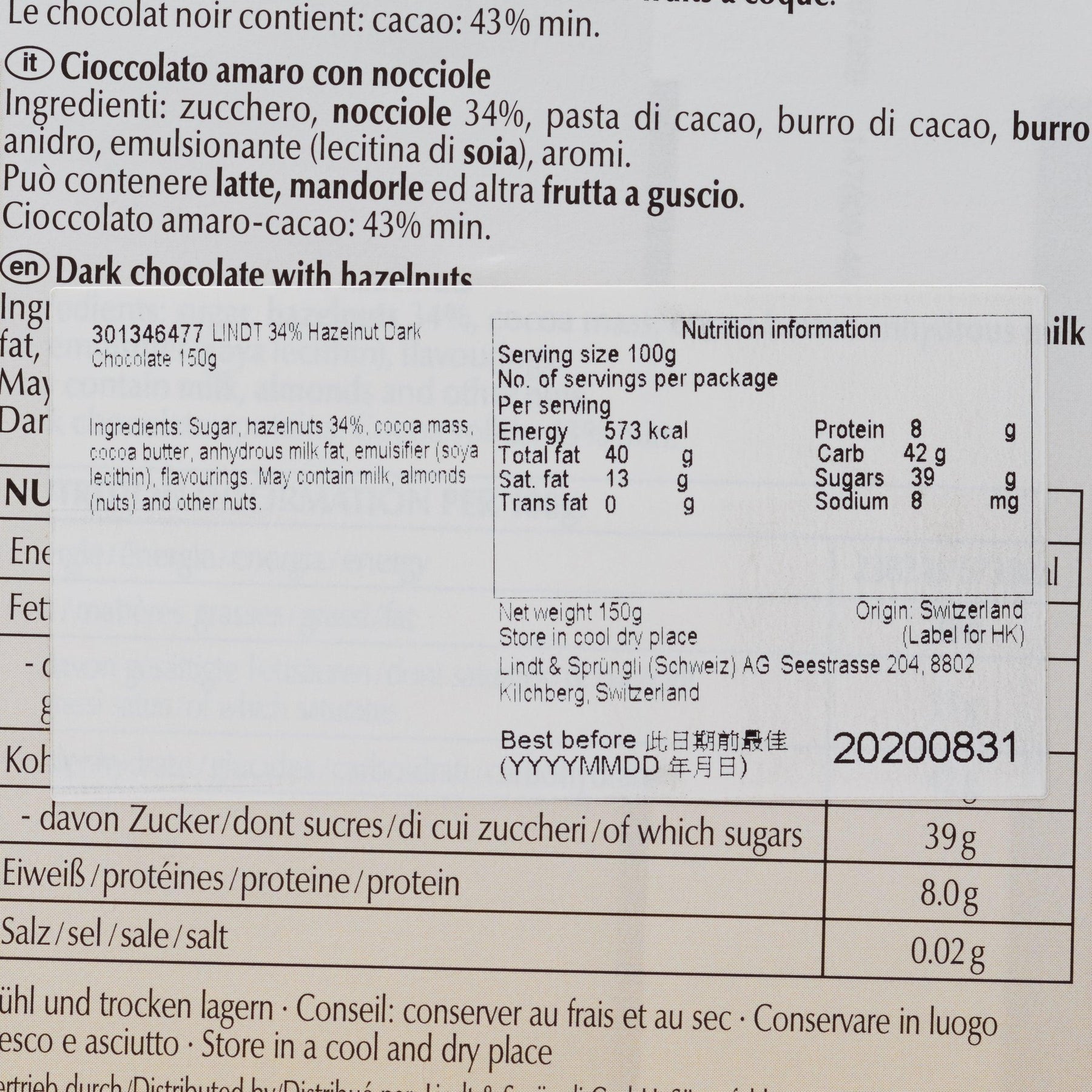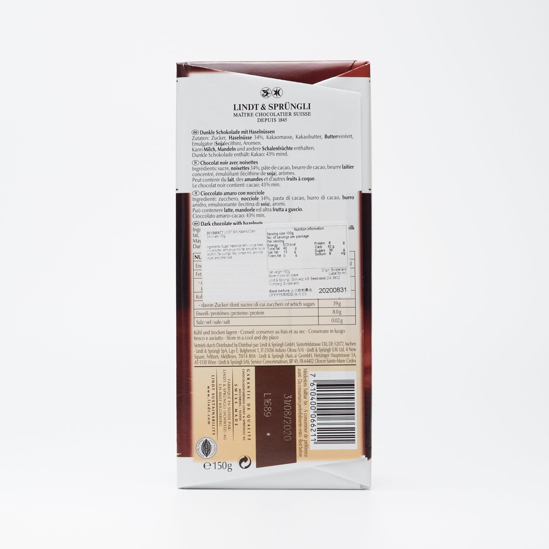 The well-known Swiss chocolatier and confectionery company founded in 1845, based in Kilchberg, where its main factory and museum are located. The Lindt Maître Chocolatiers have created the ultra-gourmet recipes with large squares filled with crunchy inclusions in generous quantities. Deliciously caramelized whole hazelnuts coated with fine Lindt dark chocolate. An irresistible pleasure!