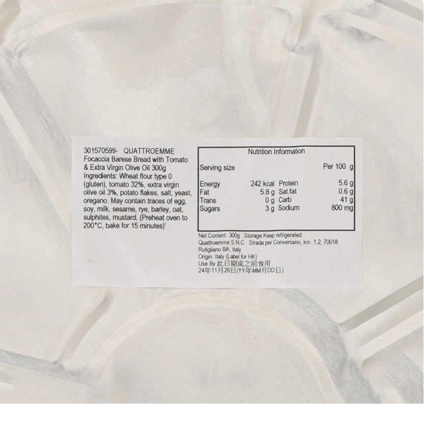 QUATTROEMME Focaccia Barese Bread with Tomato & Extra Virgin Olive Oil (300g)