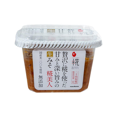 - Characteristics: 100% Japanese rice and 100% Japanese soybeans, with a gentle sweetness and deep flavour from the luxurious use of rice malt. It is a freshly made miso with no heat treatment and with the fermentation bacteria still alive.
