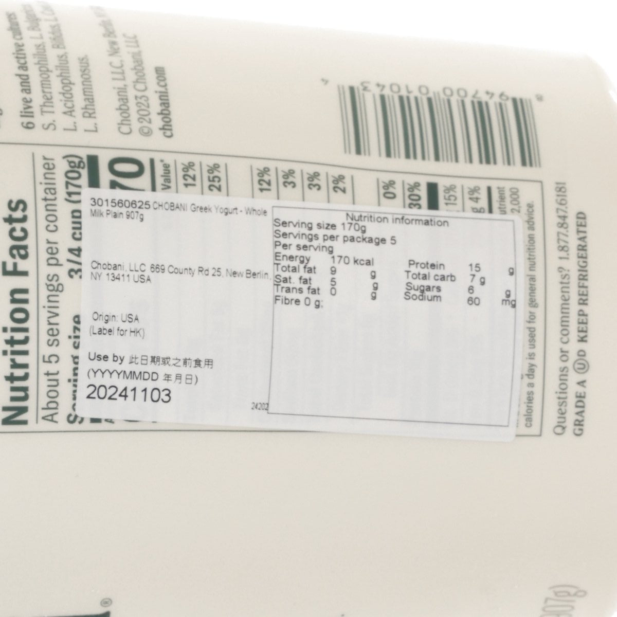 CHOBANI 希臘式乳酪 - 原味 (907g)