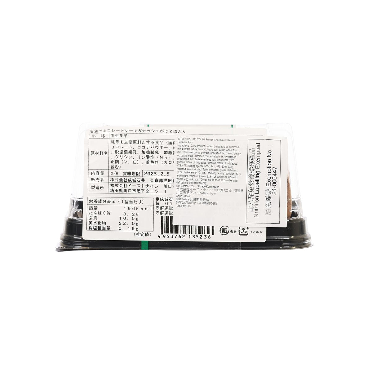 SEIJOISHII 冷凍巧克力蛋糕-奶油巧克力醬 (2 塊)
