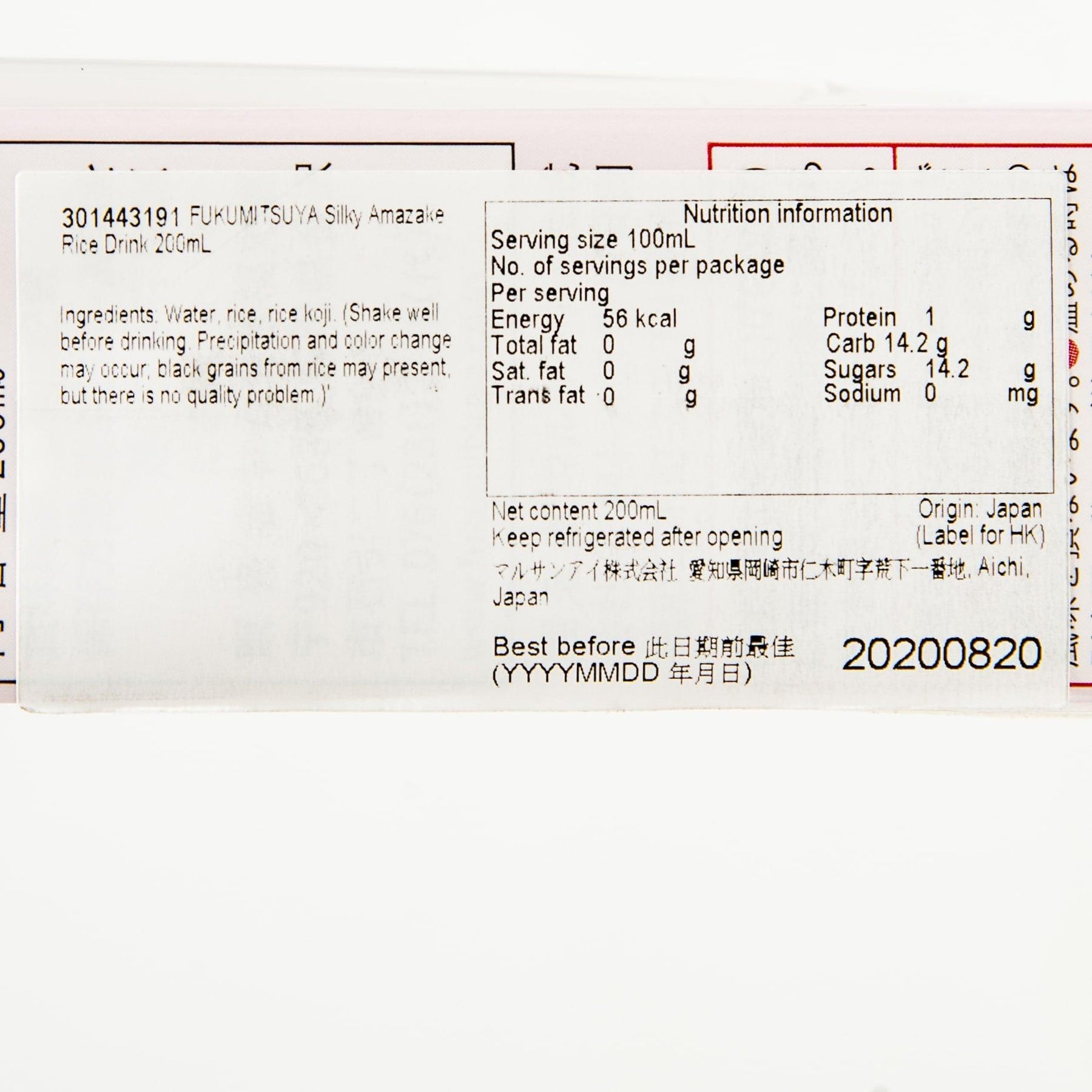 打開後保持冷藏