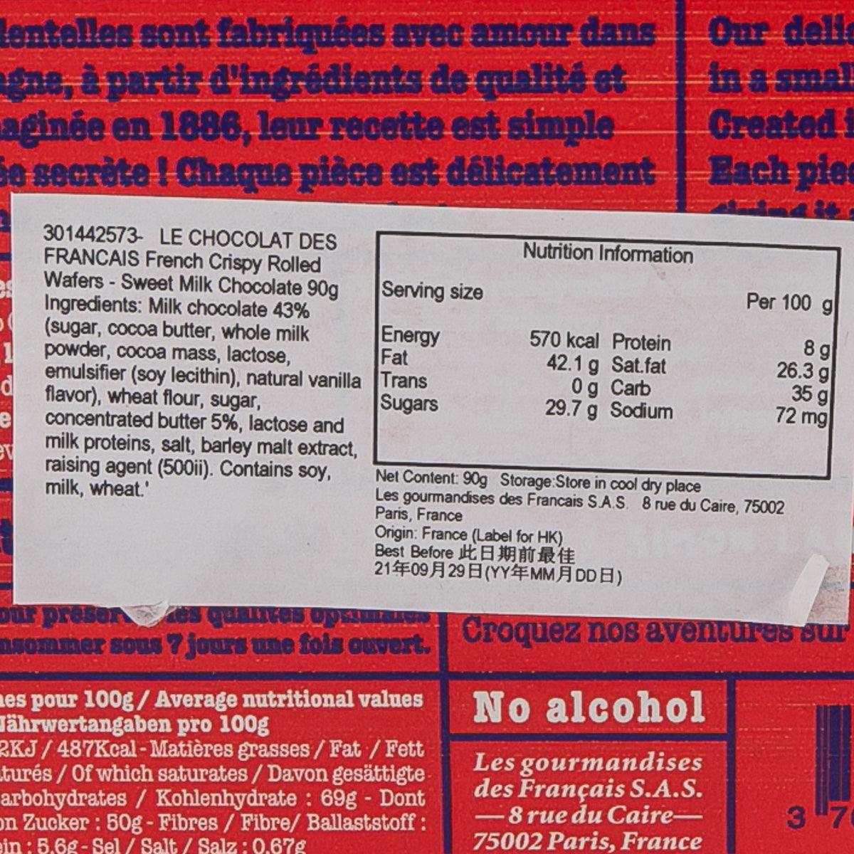 LE CHOCOLAT DES FRANCAIS 牛奶朱古力法國脆卷 (90g)