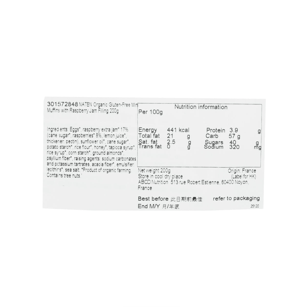 NATEN Organic Gluten-Free Mini Muffins with Raspberry Jam Filling (200g)