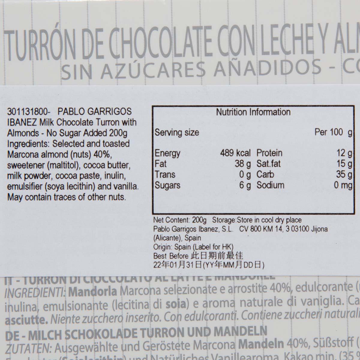PABLO GARRIGOS IBANEZ 杏仁牛奶朱古力鳥結糖 - 無加糖 (200g)