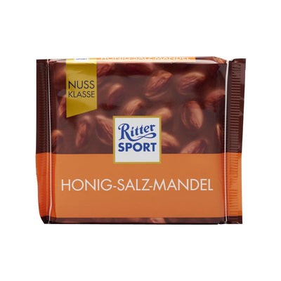 RITTER SPORT 是德國家族的朱古力品牌,以它色彩繽紛、美味可口的朱古力而聞名,被分成 16 個細小的方格,形成四乘四的標誌性格局。在鬆脆的牛奶朱古力中添加了一點蜂蜜、少許鹽和整顆杏仁,打造出這款獨一無二的美味朱古力!又甜又鹹的,太好吃了!