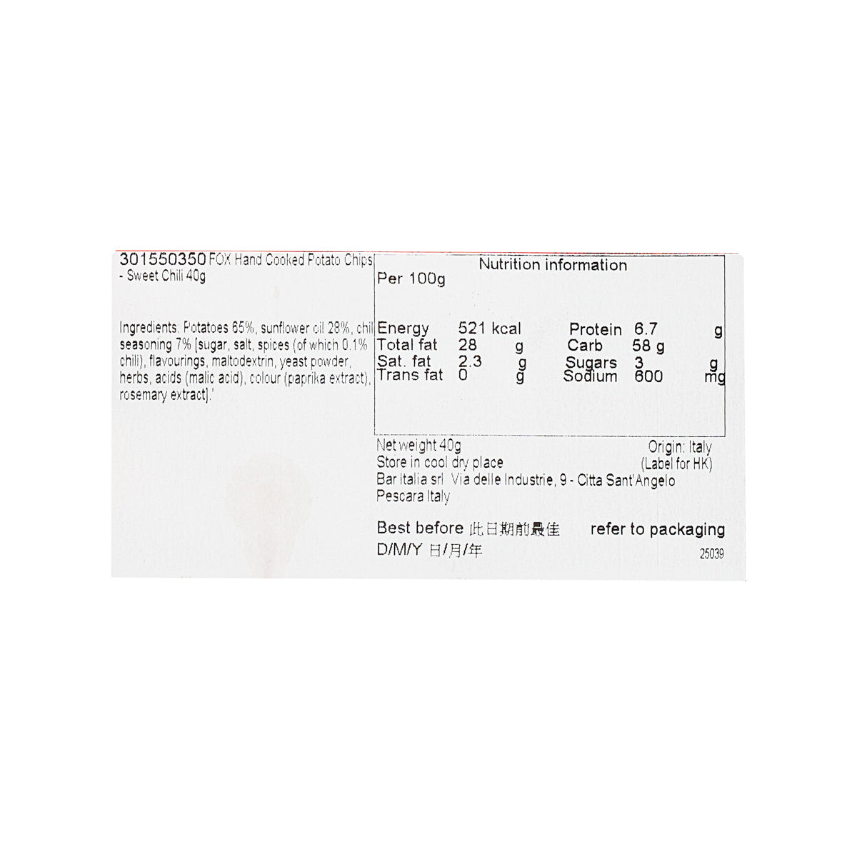 FOX Hand Cooked Potato Chips - Sweet Chili  (40g)