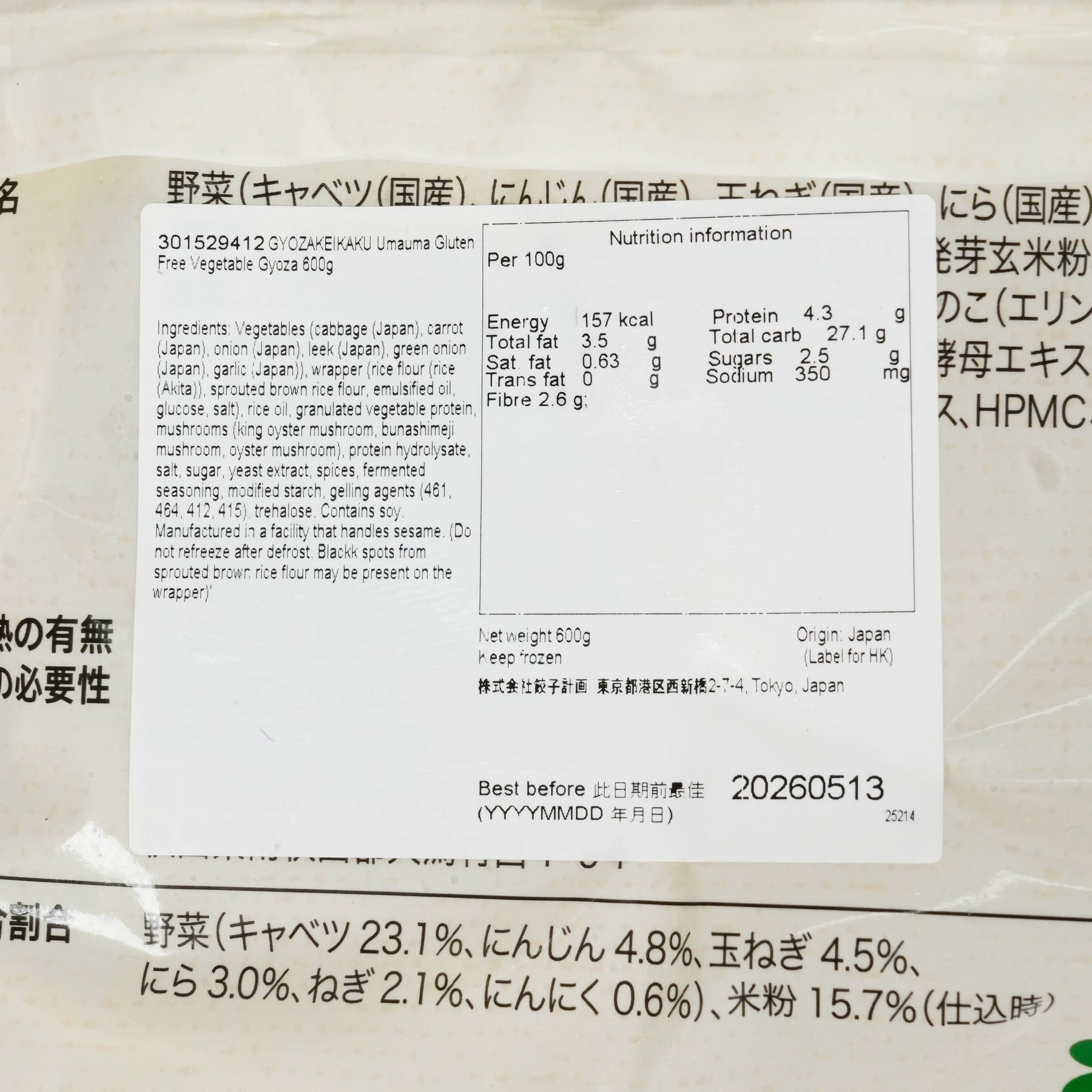 GYOZAKEIKAKU Umauma Gluten Free Vegetable Gyoza (600g)