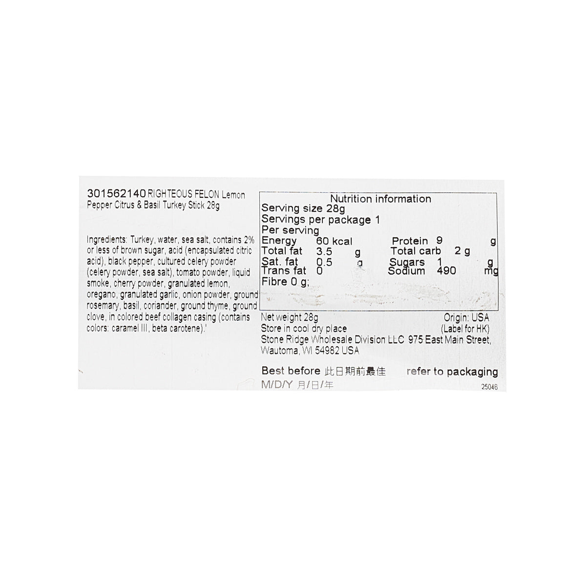RIGHTEOUS FELON 檸檬黑椒味火雞肉條  (28g)